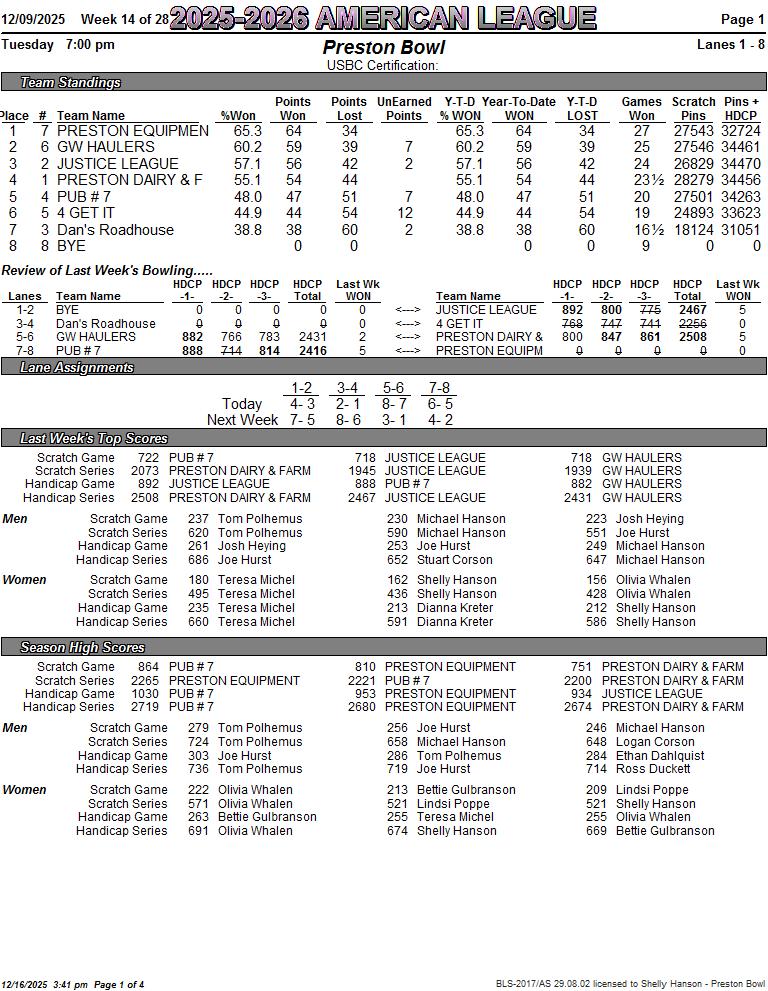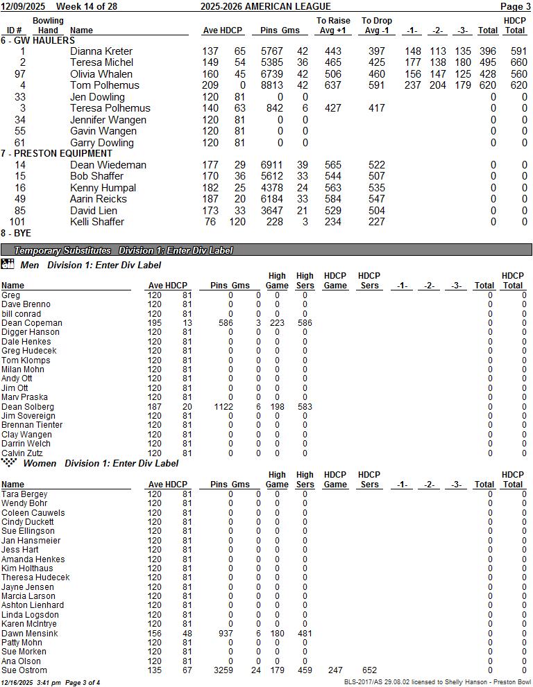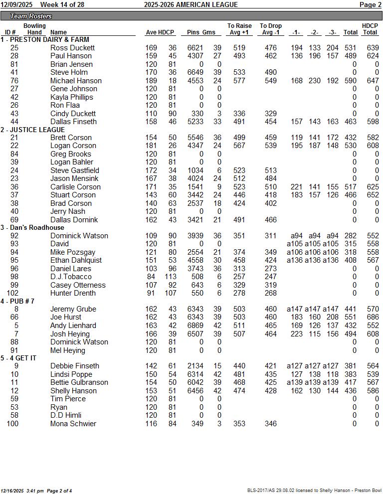American League Week 14 12/09/2025