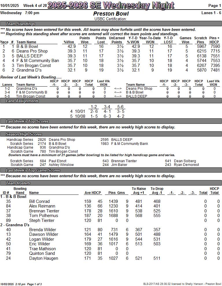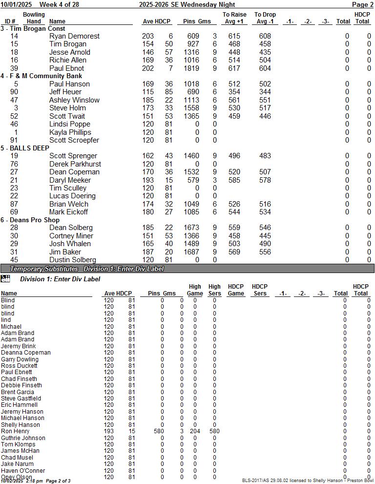 Weds. SE League Week 4 10/01/2025