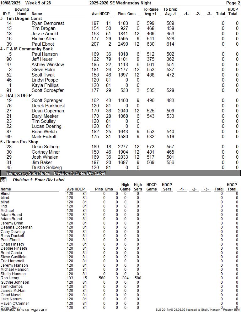 Weds. SE League week 5 10/08/2025